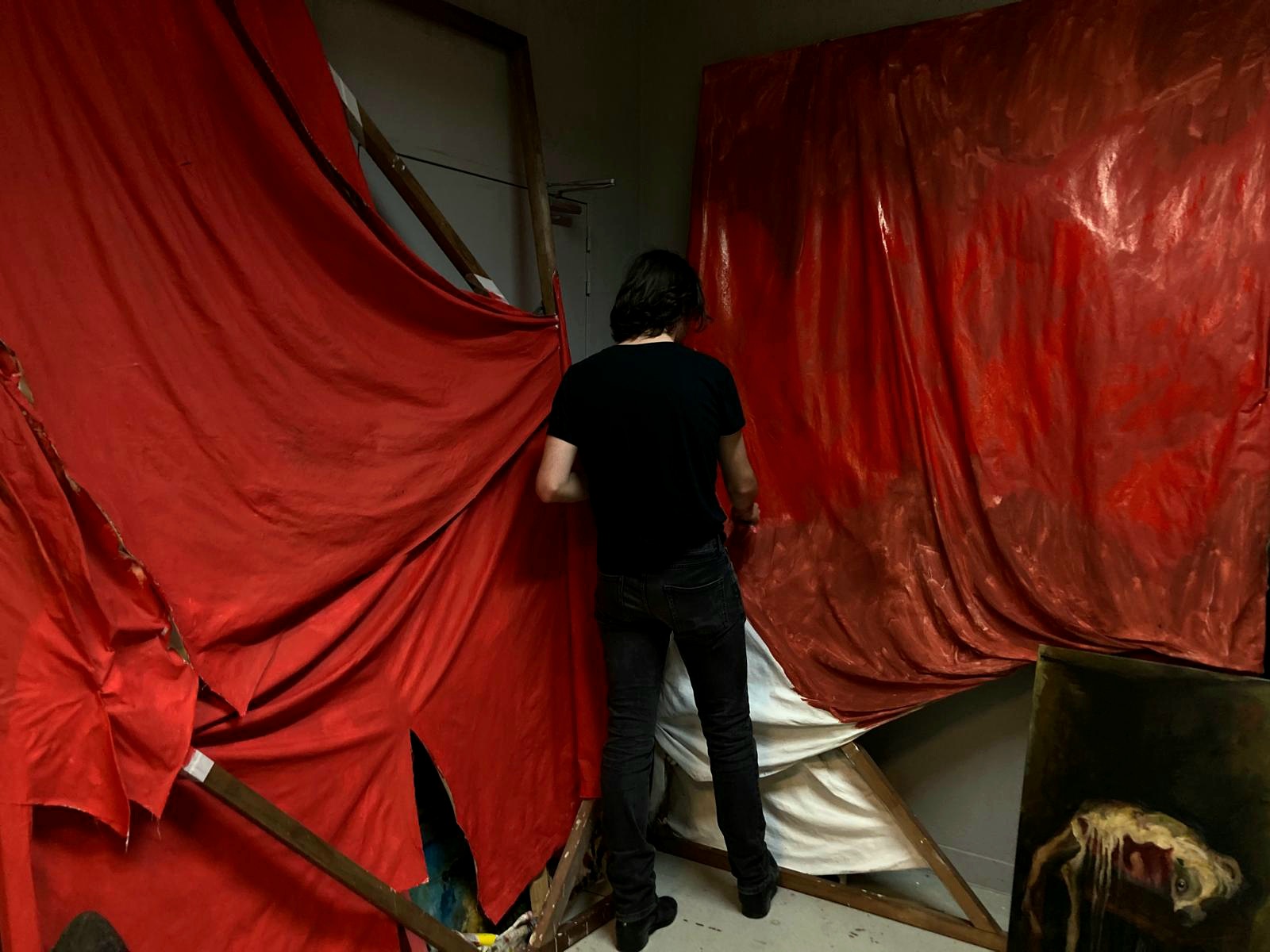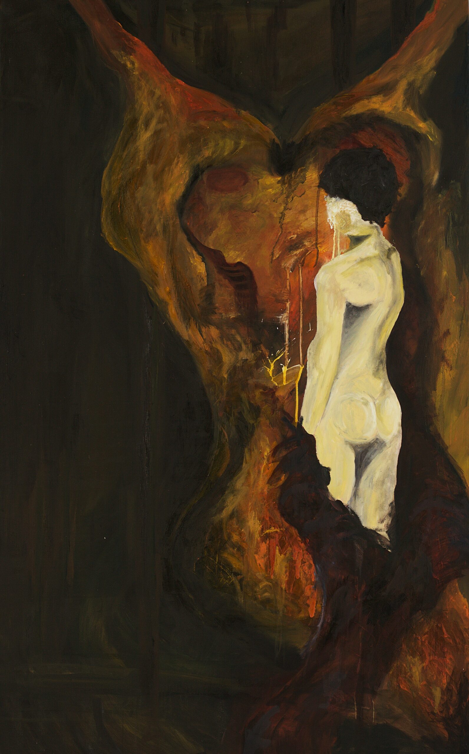 La démarche de ce travail consiste à explorer la peinture, le dessin figuratif et l’objet tableau, à travers une dualité de la matière et du sujet. Ces tableaux reflètent la condition humaine, traversée par une inspiration de la peinture romantique. Voir le monde actuel à travers un ensemble d’images en chute.